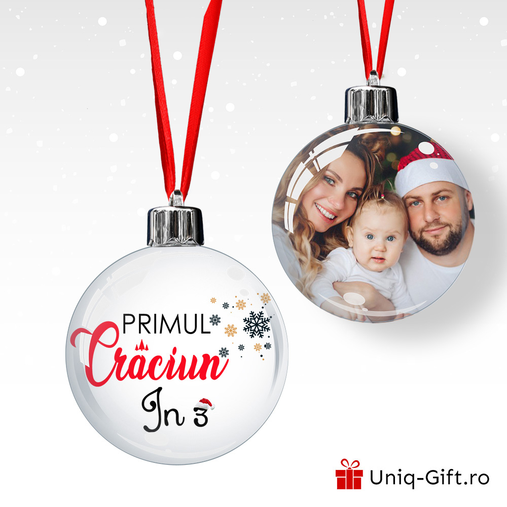 Craciunul acesta este magic, un nou membru s-a alaturat familiei, iar noi am pregatit un cadou special. Globul personalizat Primul Craciun in 3 alaturi de o poza cu parintii. Cifra poate fi schimbata dupa ce apasati “Personalizeaza Produsul”. Daca iti vizitezi prietenii ce tocmai au devenit parinti, acesta este cadoul perfect.