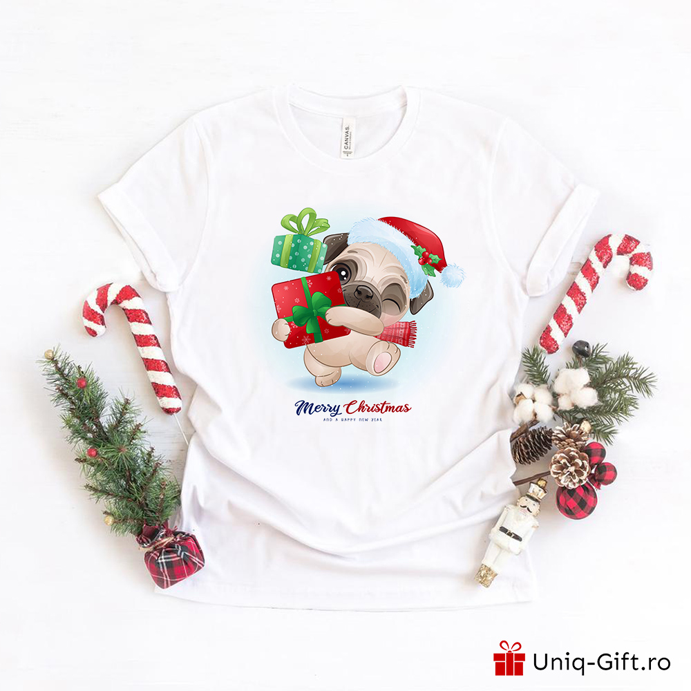 Sarbatorile sunt mai frumoase atunci cand daruim. De Craciun va propunem un tricou cu un catel animat de rasa pugdog, poate fi purtat de adulti dar si de copii. Tricourile noastre sunt unisex si se potrivesc perfect pentru intreaga familie, pentru cupluri sau pentru copii. Sarbatorile sunt minunate atunci cand sunt petrecute in familie sau cu prietenii. Alege sa oferi cadou tricouri cu motive de Craciun. Puteti alege din peste 50 de modele de tricouri de Craciun.