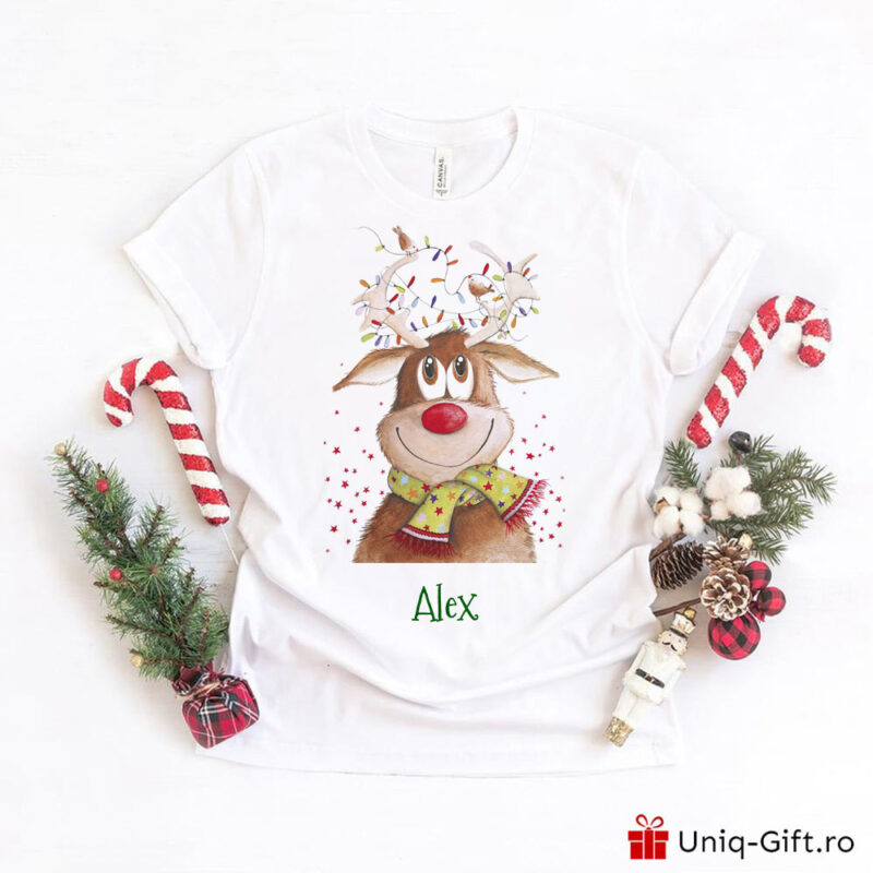 Tricou de Craciun pentru adulti sau copii, ce poate fi personalizat cu numele dorit. Ti-am pregatit un tricou simpatic cu un ren, ce poate fi un cadou perfect pentru cei mici, cat si pentru adulti. Un cadou amuzant, ce poate fi purtat Craciunul acesta de iubitul sau iubita ta.
