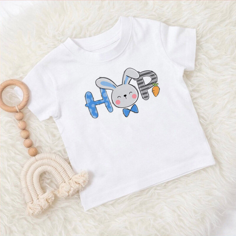 Un tricou colorat, ce poate atrage privirile oricarui copil, cu un simpatic iepuras, ce reprezinta gingasia. Tricoul personalizat Hop pentru copii are un model ce poate reprezenta gingasia si atractia celor mici fata de iubitii iepurasi, adaugandu-se o coloristica de primavara.